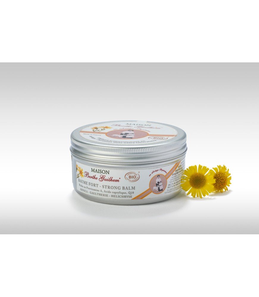 IMPORTANT : La législation européenne concernant les cosmétiques interdisant toute allégation thérapeutique, il nous est impossible de mentionner toutes les utilisations du baume fort à l’arnica. Par contre, vue la notoriété de l’arnica, la gaulthérie, l’hélichryse, la menthe poivrée, etc, nous vous conseillons vivement de vous documenter sur les nombreux sites ou forums consacrés à l’information de ces merveilleuses plantes médicinales afin de mettre à profit leurs innombrables vertus connues souvent depuis l’antiquité.