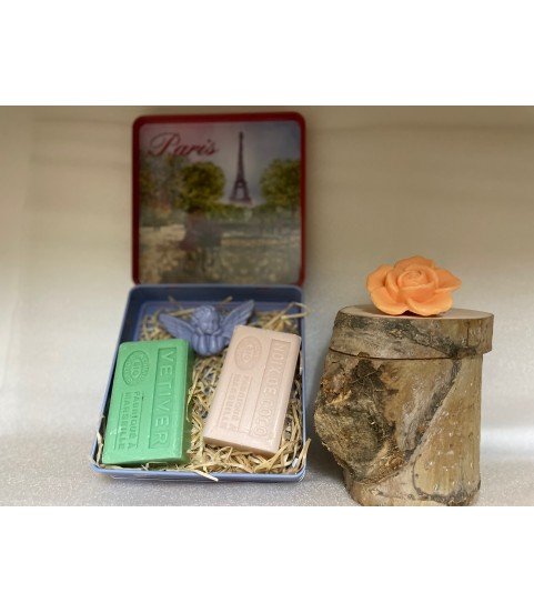 BOITE 1 : 2 savons olives 125 g, 2 savons fantaisie 30 g