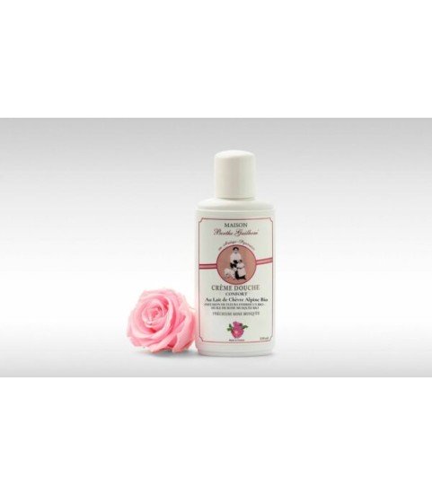 Aux portes du Parc Naturel Régional des Pyrénées Ariégeoises, le laboratoire Maison Berthe Guilhem a imaginé cette crème douche confort qui est élaborée à partir d’infusion de fleurs d’hibiscus bio. Nous utilisons une base lavante à base de coprah et de sucre de betterave. La Maison Berthe Guilhem a choisi pour cette crème douche l’huile de rose musquée de la famille de l’églantine, et qui pousse à l’état sauvage dans la Cordillère des Andes. Le rosier musqué grandit sous la forme d’un petit arbuste et offre de très jolies roses musquées de couleur rose, mais surtout, des fruits exceptionnels nous offrant cette très fameuse huile de rose musquée. Son parfum aux effluves douces et aux notes olfactives rosées, fines, fleuries et très suaves vous enveloppera de douceur.